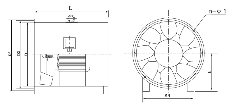 2.風(fēng)機出廠時法蘭一般不打孔n-φ1僅供參考,若要打孔請用戶在訂貨時說明。