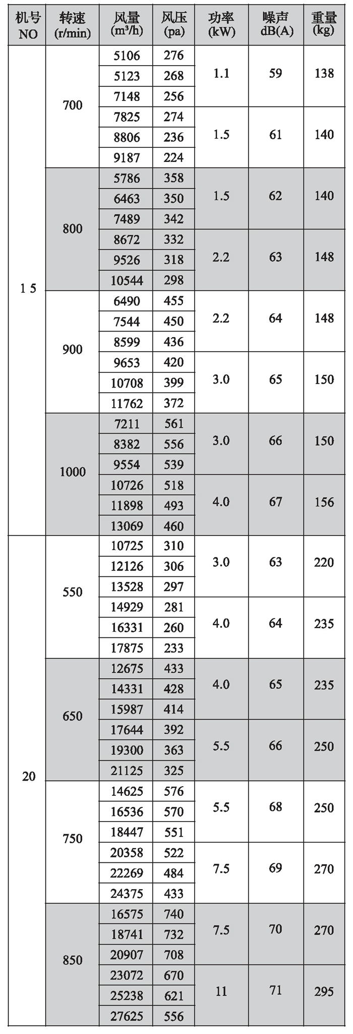 2.機號NO為葉輪直徑英寸數,如電機放在風機上面,A型高度須補加電機高度,寬度須補加皮帶罩寬度;如電機放在風機側面,A型寬度須補加電機長度。
