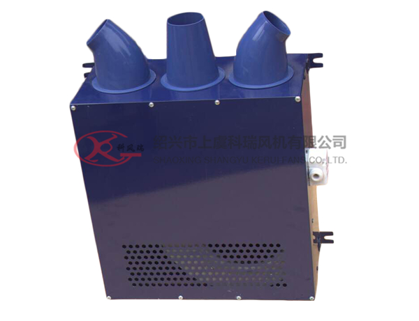 球形噴口立式誘導(dǎo)風(fēng)機(jī)由離心式通風(fēng)機(jī)、消聲機(jī)箱、三個(gè)萬向球形噴嘴組成,回轉(zhuǎn)角度<60* ,噴口φ80X3;